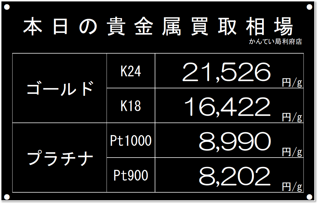 本日の【金】【プラチナ】買取相場