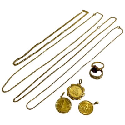貴金属/ジュエリーK18ネックレス K24、Au900コイン付ペンダントトップ リング
