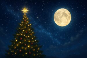 冬の澄んだ空気が街を包み込み、イルミネーションの青い光がきらめく12月✨