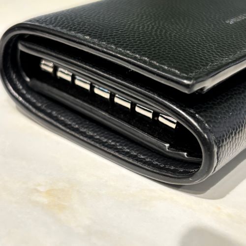 今回お持ち頂いたSAINT LAURENT(サンローラン)グレインレザー 6連キーケースは目立つキズや変色は見られませんでした。大きなものではありませんが、金具部分やレザー表面に落ちない汚れかキズのようなものは確認できます。