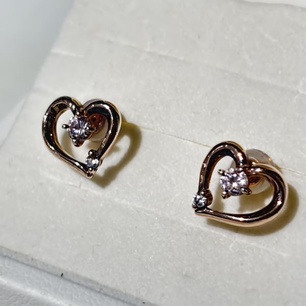 ピンクゴールドカラーのハートピアスは、優しい色合いのキュービックジルコニアが可愛らしさを演出して女性らしさを引き立てます。サイズ感がよく、可愛くなりすぎず甘くなりすぎない毎日身に着けたくなるスタッドピアスです。
