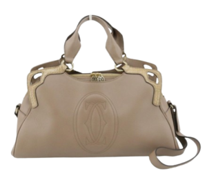 特徴: ソフトなカーフレザー、特徴的なフリンジ、そしてカルティエの「C」を象ったようなダブルCモチーフの金具が特徴です。丸みを帯びたフォルムがフェミニンな印象を与え、幅広い年齢層に支持されました。