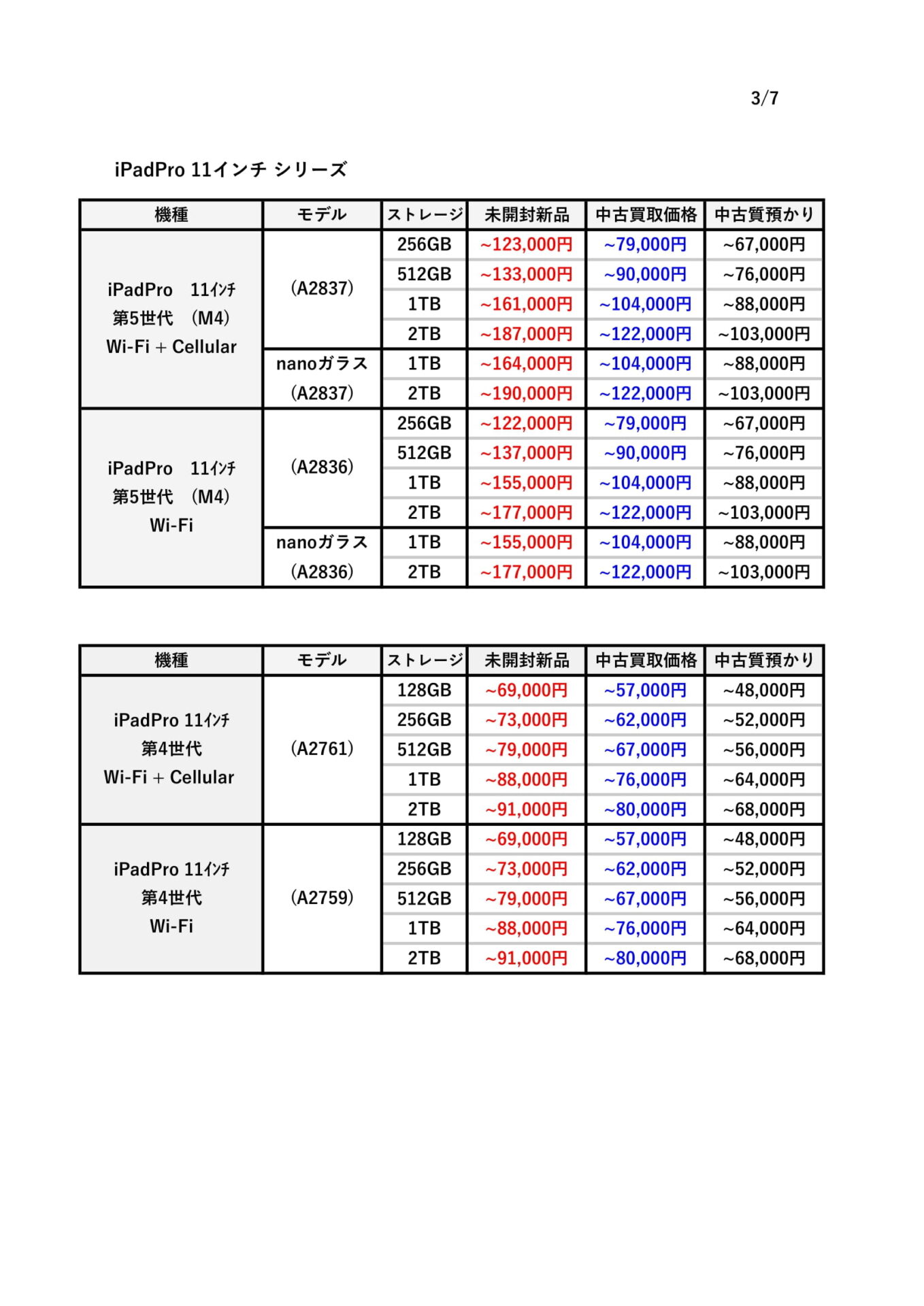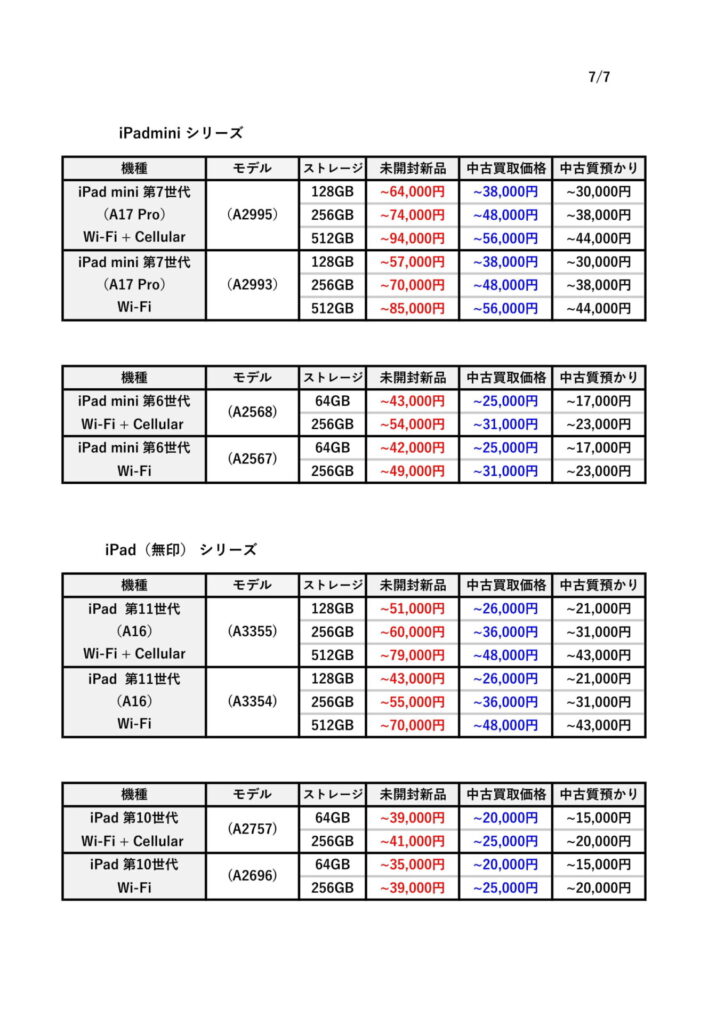 本日はiPadシリーズの買取価格と質預かりについて説明いたしました。