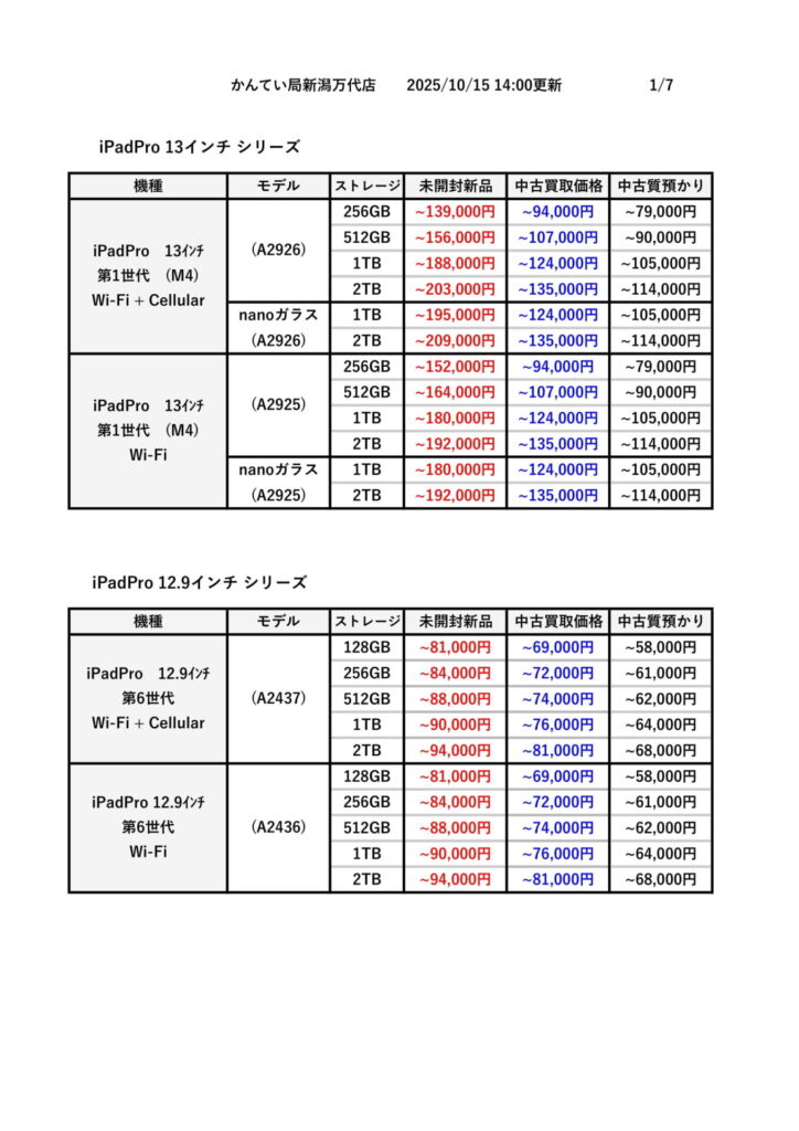 もし使わなくなったiPadや新しいモデルへの買い替えをお考えの方は、ぜひかんてい局万代店までご相談ください。