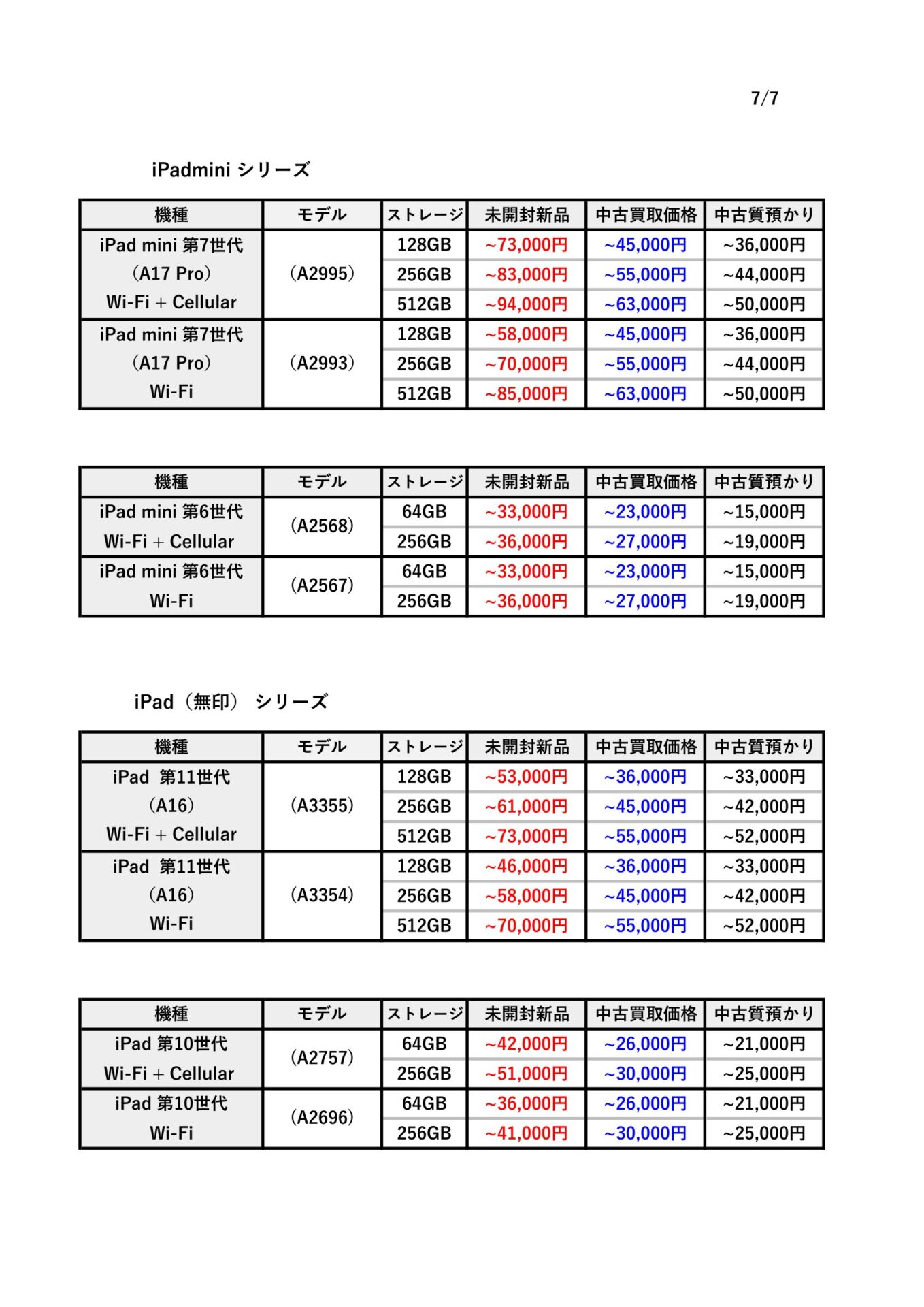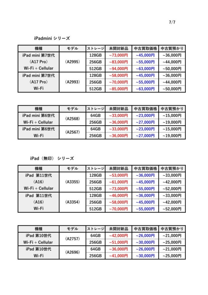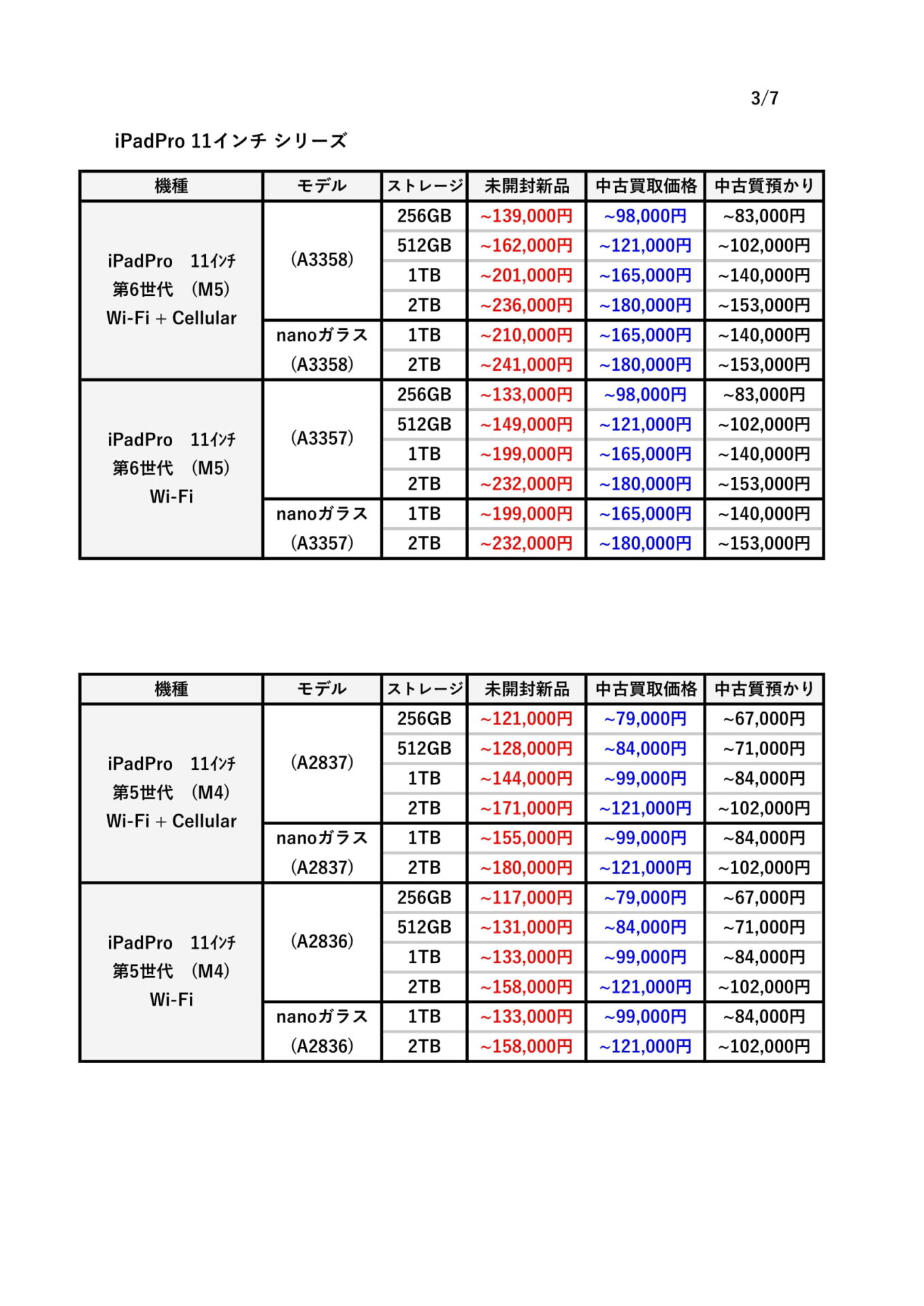 この記事では、iPadの買取価格や質入れ(ご融資)の目安を分かりやすくまとめています。