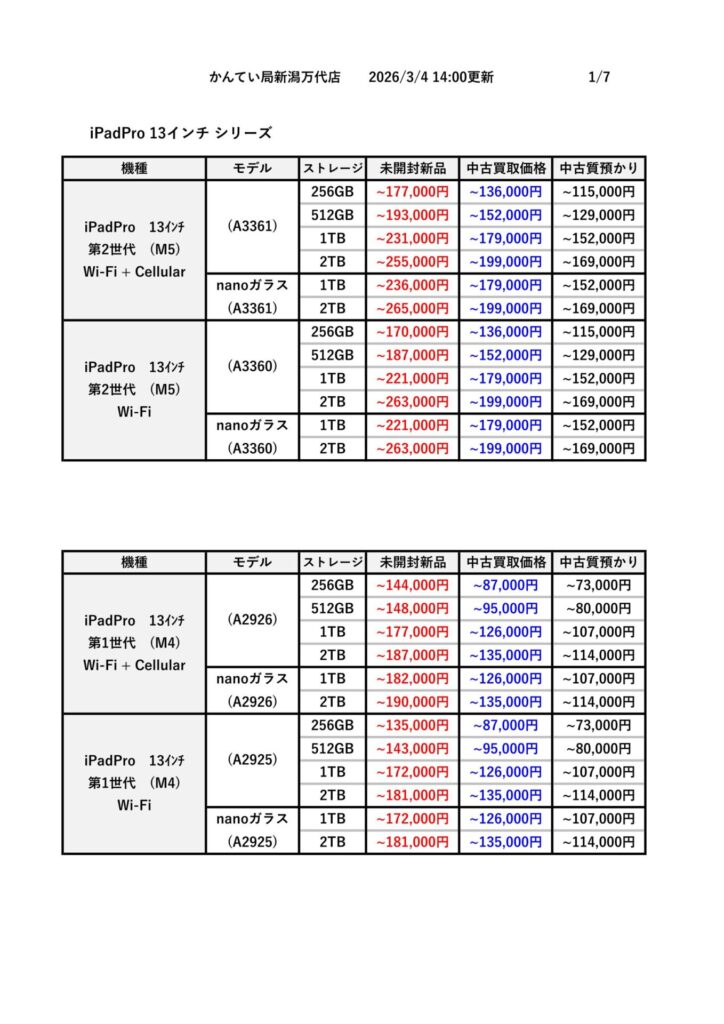 【2026年最新】iPadは今いくらで売れる?モデル別の買取価格と質預かり金額のまとめ【新潟万代店】