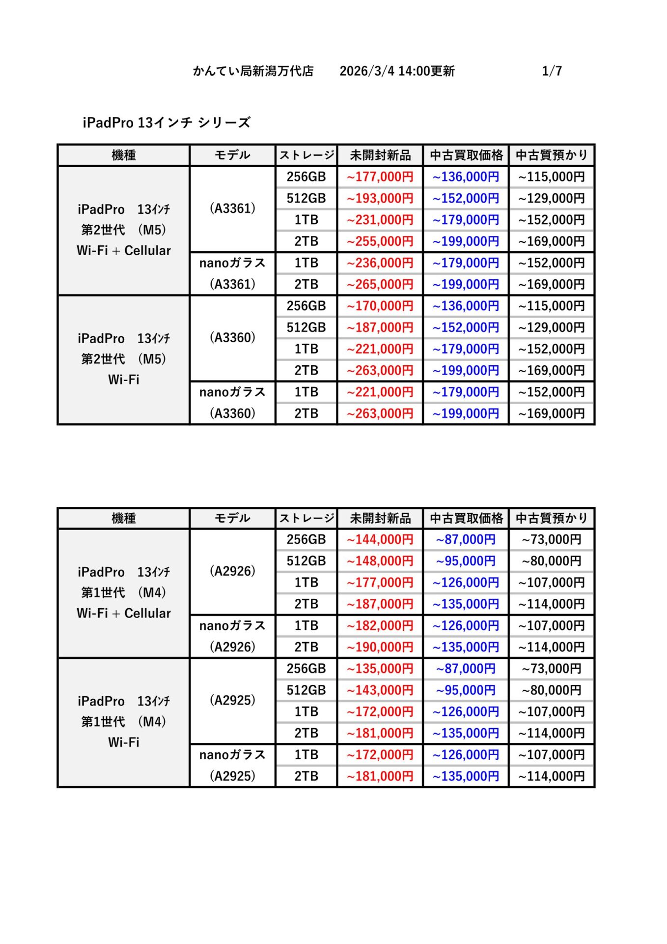 ※こちらはかんてい局新潟万代店の価格となり、お持ち込みのタイミングや現物の確認そして市場の相場によって価格が変動する場合があります。