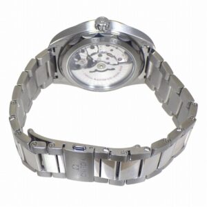 洗練されたブルー文字盤やシースルーバックから見える波模様の仕上げが特徴で、細部まで丁寧につくられたモデルです。