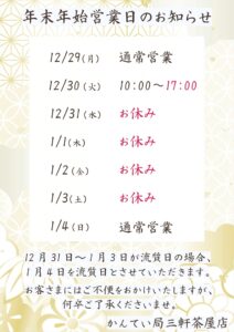 年末年始の営業、休業日のお知らせです★
