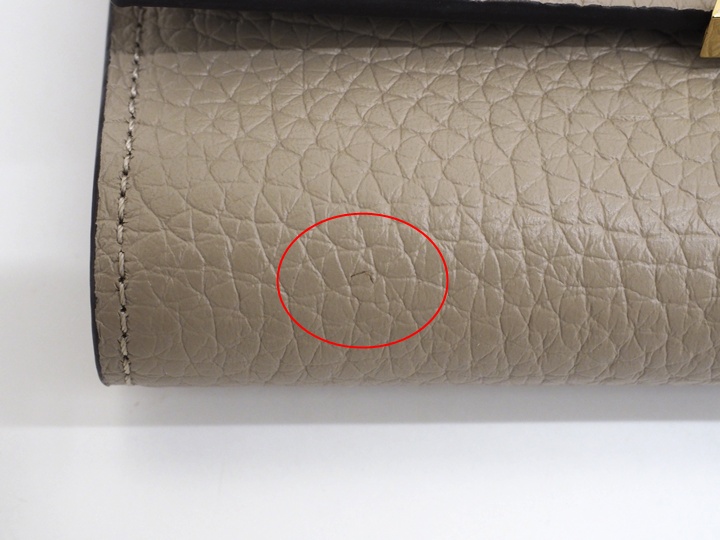 今回のお品は、レザーの表面に小さい傷が数箇所見受けられましたので、残念ながらマイナスポイントとなってしまいます。