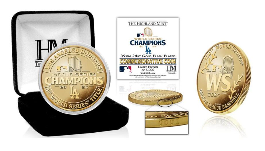 世界限定5000個MLB・シリアルナンバー入りMLBのMLBオフィシャルライセンス品「2024 ワールドシリーズ優勝記念ゴールドコイン」は、2025年11月時点でネットで15,000円~20,000円で販売されています。