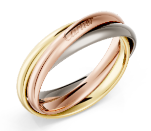トリニティリングは、イエローゴールド・ホワイトゴールド・ピンクゴールドの3色のリングが絡み合う、カルティエを象徴するデザインで、シンプルながらもブランド力が高く人気の高いリングです。