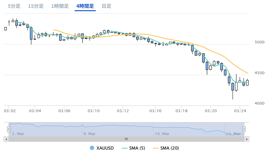 1000円程度の幅で下落したり、上昇したりという動きを見せたこともありましたが、2026年3月18日頃から金価格は大きく下落しています。