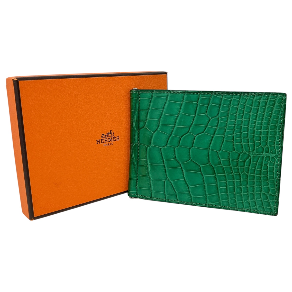 【HERMES】 エルメス ベポーカーGM アリゲーター 二つ折り長財布 T刻印