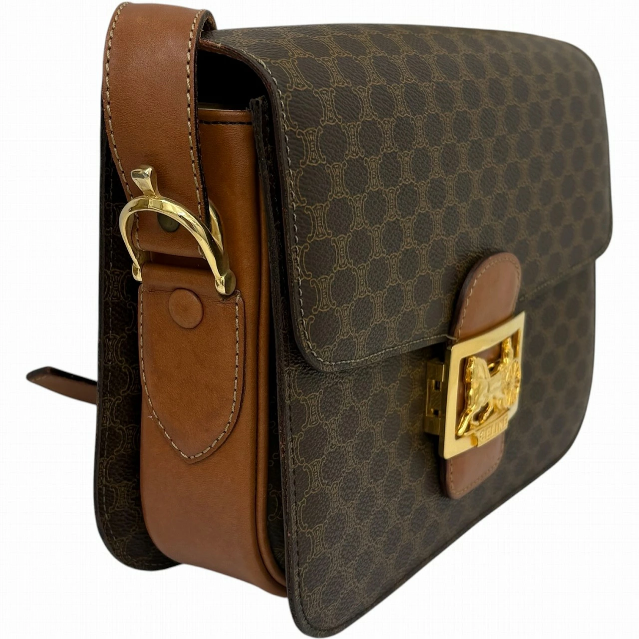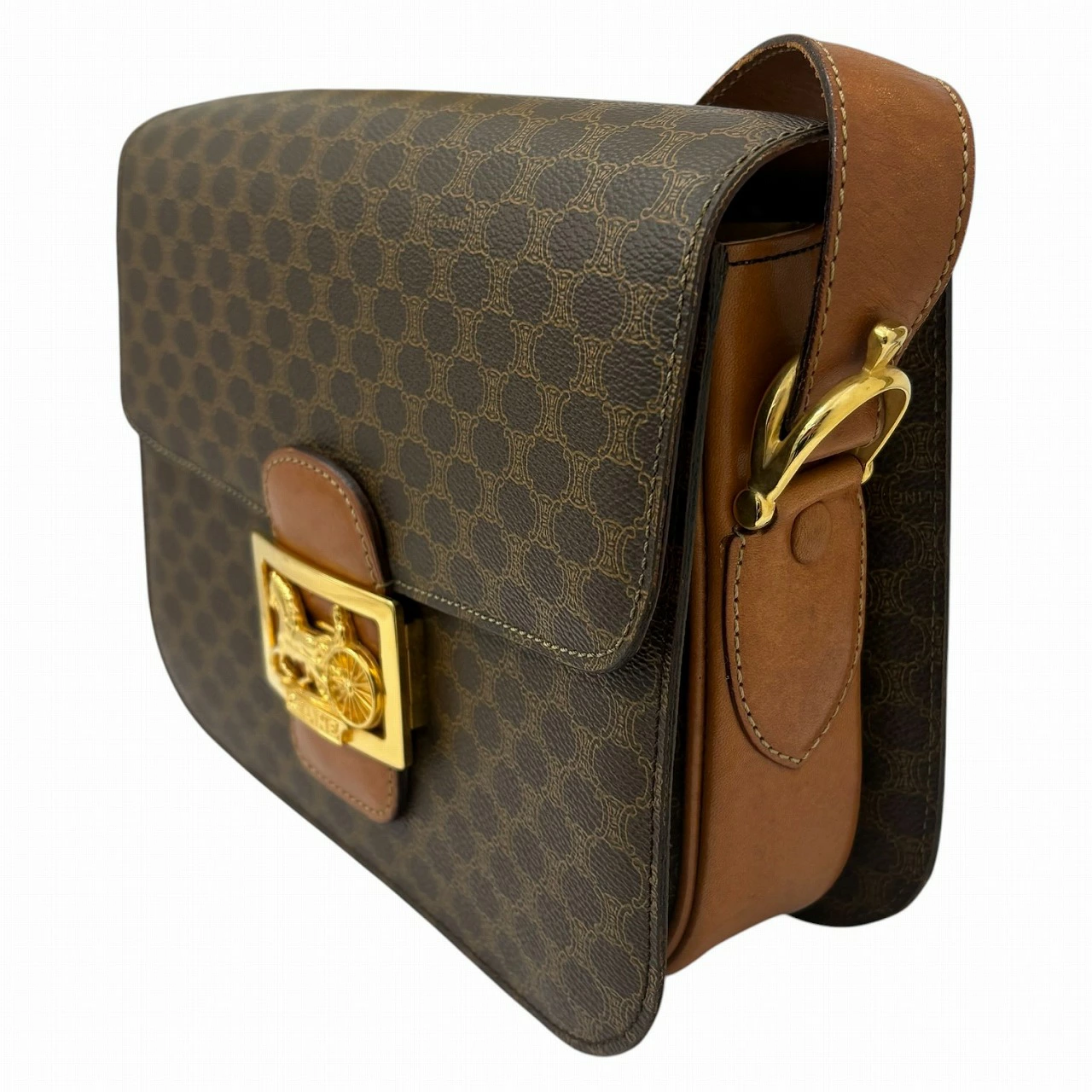 【CELINE】セリーヌ オールドセリーヌ マカダム柄 ホースキャリッジ ショルダーバッグ