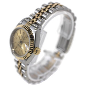 今回の「69173/デイトジャスト」は、1984年から1998年まで製造されたレディースの定番モデルです。K18とステンレススチールを組み合わせたコンビモデルで、自動巻きムーブメントのCal.2135を搭載しています。デイトジャストのレディースモデルにおいて初めて風防にサファイアクリスタルを採用したモデルであり、風防にキズが付きにくく高級感がより引き立ちます。アンティークモデルとして、現在も人気があります。