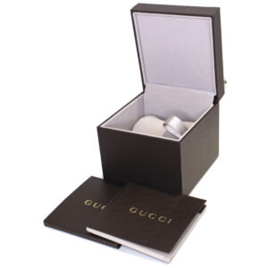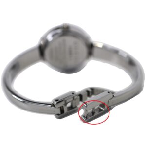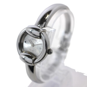 今回の「1400L レディースクオーツ」は、ブレスレット感覚でつけられるバングルコレクション。「1400シリーズ」は柔らかなラウンド型のケースに、グッチの代表モチーフでもある「ホースビット」デザインを取り入れたフェミニンな装いのタイムピースです。 グッチの代名詞でもあるバングルタイプの艶ありブレスレットも含め、軽やかな見た目のため日々のコーディネートに合わせやすいこともポイントです。 ワークシーンはもちろんカジュアルスタイルでも活躍するバングルウォッチ。アクセサリー感覚でお手持ちのブレスレットと重ねて着けるのもおしゃれです。