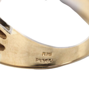 今回のジュエリーは「K18」と「Pt900」という刻印がありますので、純度は「金が75%」と「プラチナが90%」使われています。