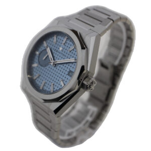 今回の「ディファイ スカイライン(スカイブルー)」は、1969年に発表された「A384」を彷彿とさせる八角形のケースと12角形のベゼルが特徴的な、スポーティーでありながら高級感のあるデザインが魅力です。1/10秒を計測できるムーブメント「エル・プリメロ 3620」を搭載し、クイックストラップチェンジ機構により、簡単にブレスレットとラバーベルトを交換できるのも特徴です。洗練されたデザインと高い機能性、そしてゼニスの伝統と革新が融合した魅力的な時計です。時計愛好家からも高い評価を得ています。ビジネスシーンからカジュアルなシーンまで、幅広く活躍できる一本として人気を集めています。