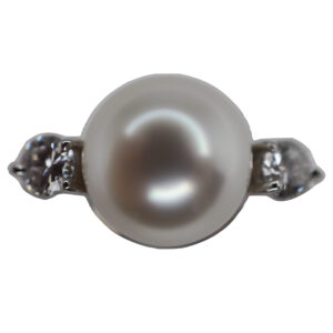 トップのパールを2つのダイヤで留めているため、とてもキラキラしてくれるリングです。
