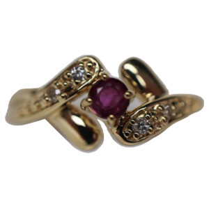 今回はK18 「ルビー/MD4ヶ付きリング 約10号」を「26,000円」で、お買取りさせて頂きました。