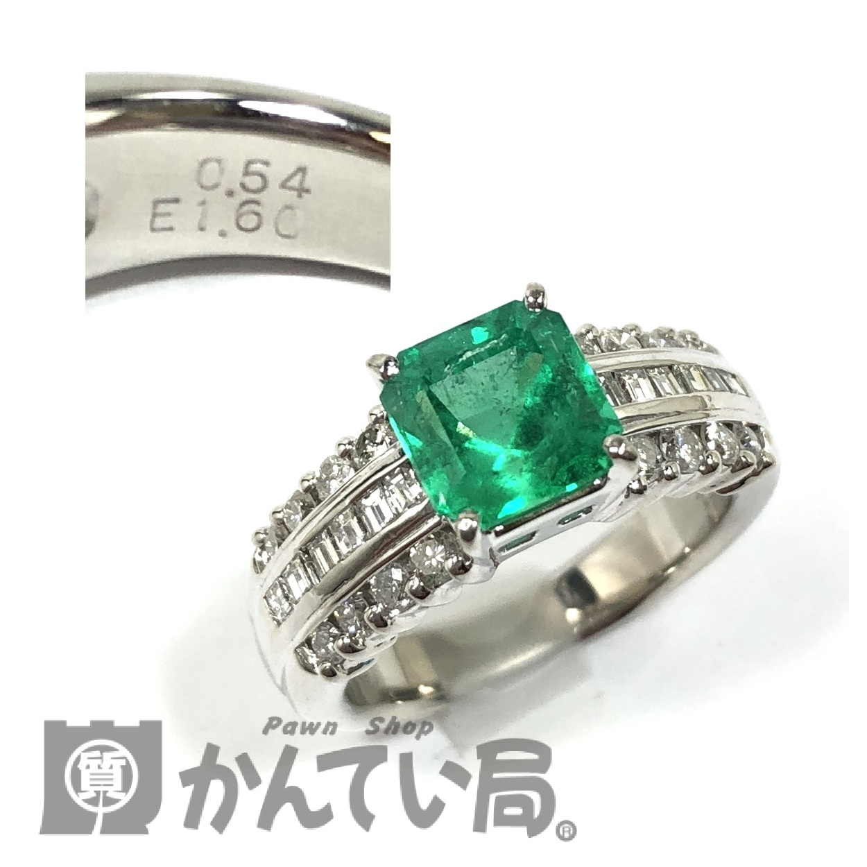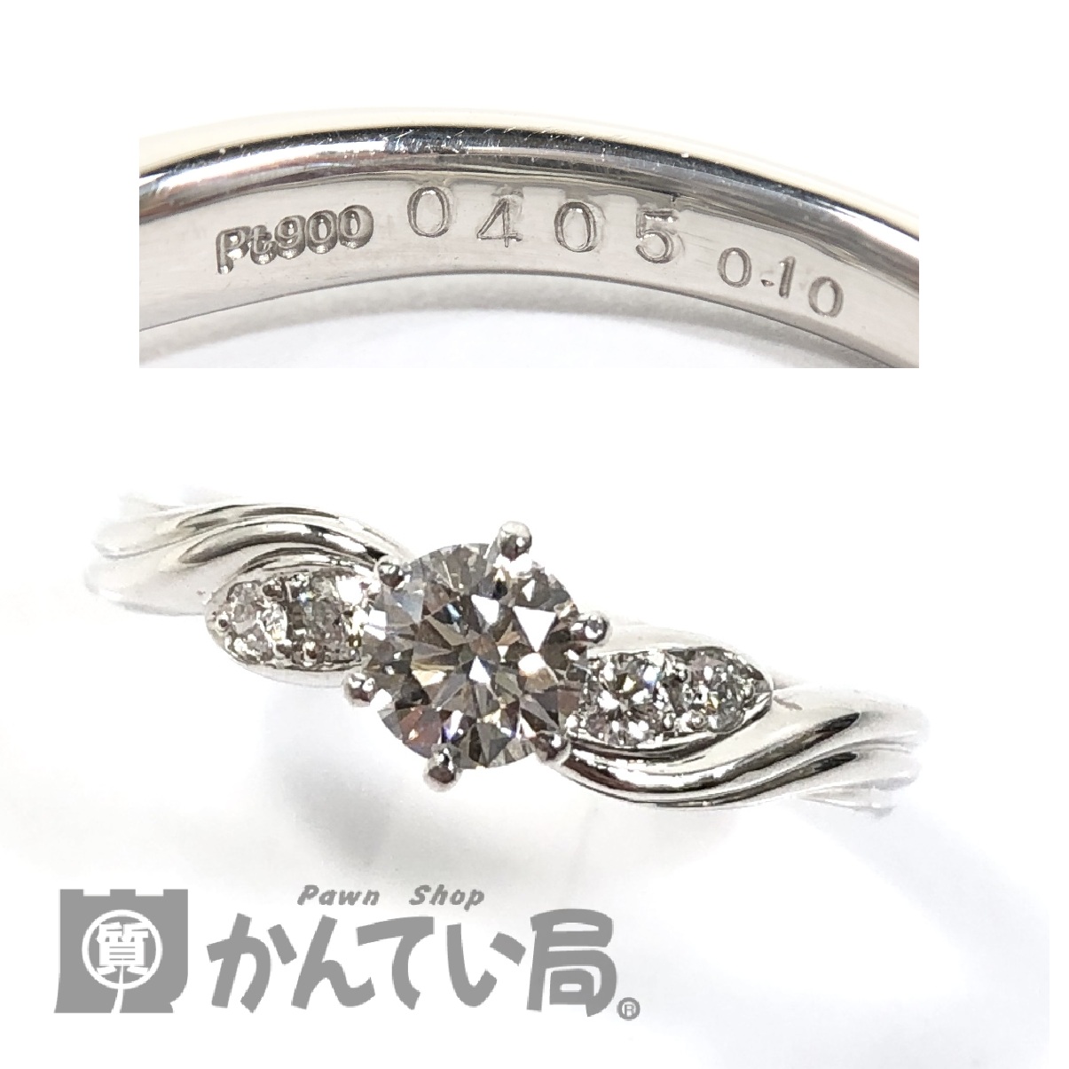 下の画像の場合、1枚目の「0.54/E1.60」という刻印は「ダイヤ0.54カラット/エメラルド1.60カラット」という意味で、2枚目の「0405/0.10」という刻印は「メインのダイヤは0.405カラット/脇にある小さなダイヤは合計で0.10カラット」という意味になります。