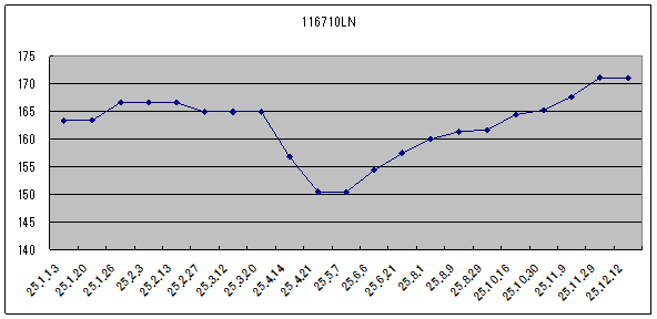 GMTマスターⅡ 116710LN の2025年12月12日現在の買取価格は、状態のいいもので 171万円になる可能性があります。