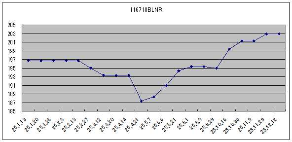 サブマリーナデイト 116610LN の2025年12月12日現在の買取価格は、状態のいいもので 159万円になる可能性があります。