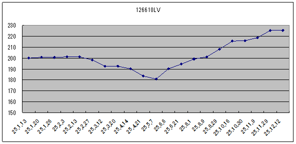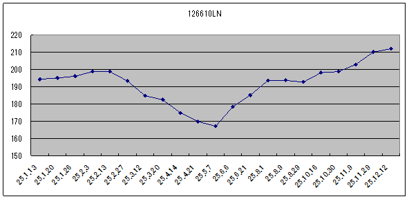 グリーンサブマリーナ 126610LV の2025年12月12日現在の買取価格は、状態のいいもので 225万円になる可能性があります。