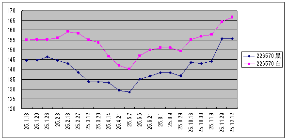 黒文字盤が横ばい、白文字盤が3万円の上昇です。
