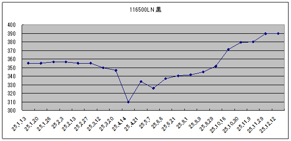 前回11/29は黒文字盤が118万円、白文字盤が125万円でした。