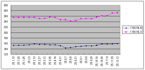 ロレックス全体の上がり下がりの目安として参考にしてください。