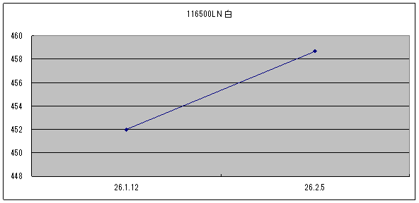 前回1/12は黒文字盤が118万円、白文字盤が125万円でした。
