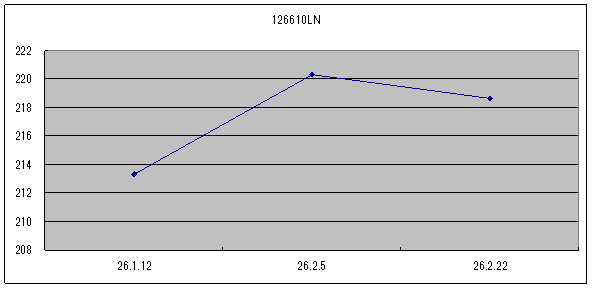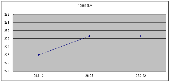 前回2/5は黒文字盤が122万円、白文字盤が133万円でした。