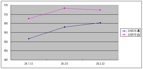 前回2/5は黒文字盤が163万円、白文字盤が173万円でした。