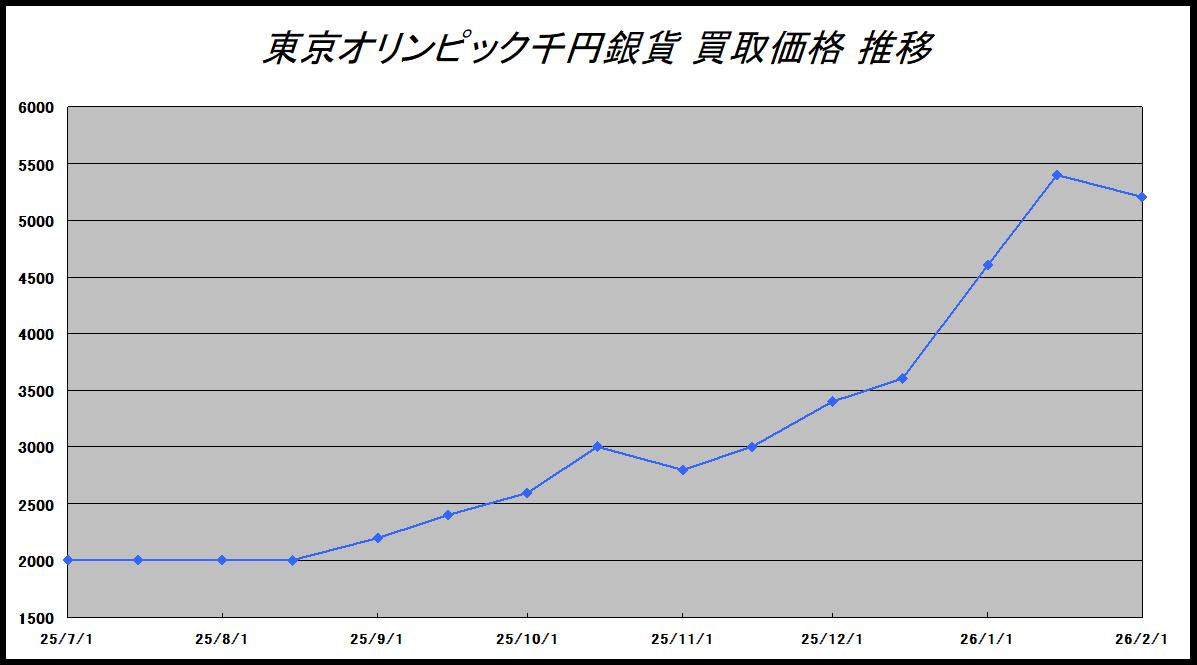 1964年東京オリンピック千円硬貨は近年価値が上がっておりますが、買取価格は毎日変動しています。