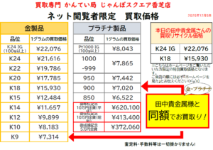 【 速報 12/5】金・プラチナ 買取相場高騰中!ネット限定 本日限定価格