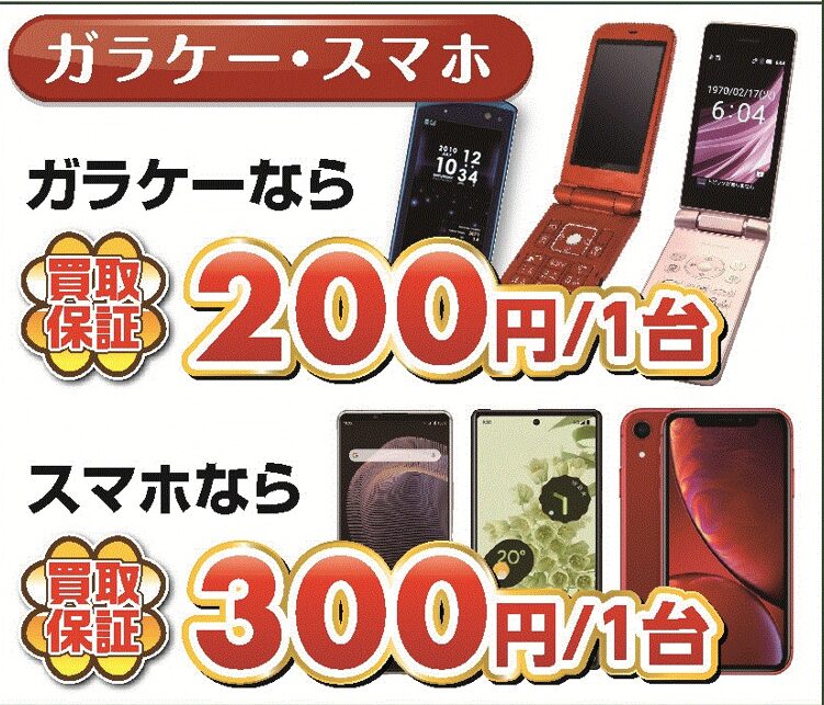 スマホなら1台300円で買取保証!
