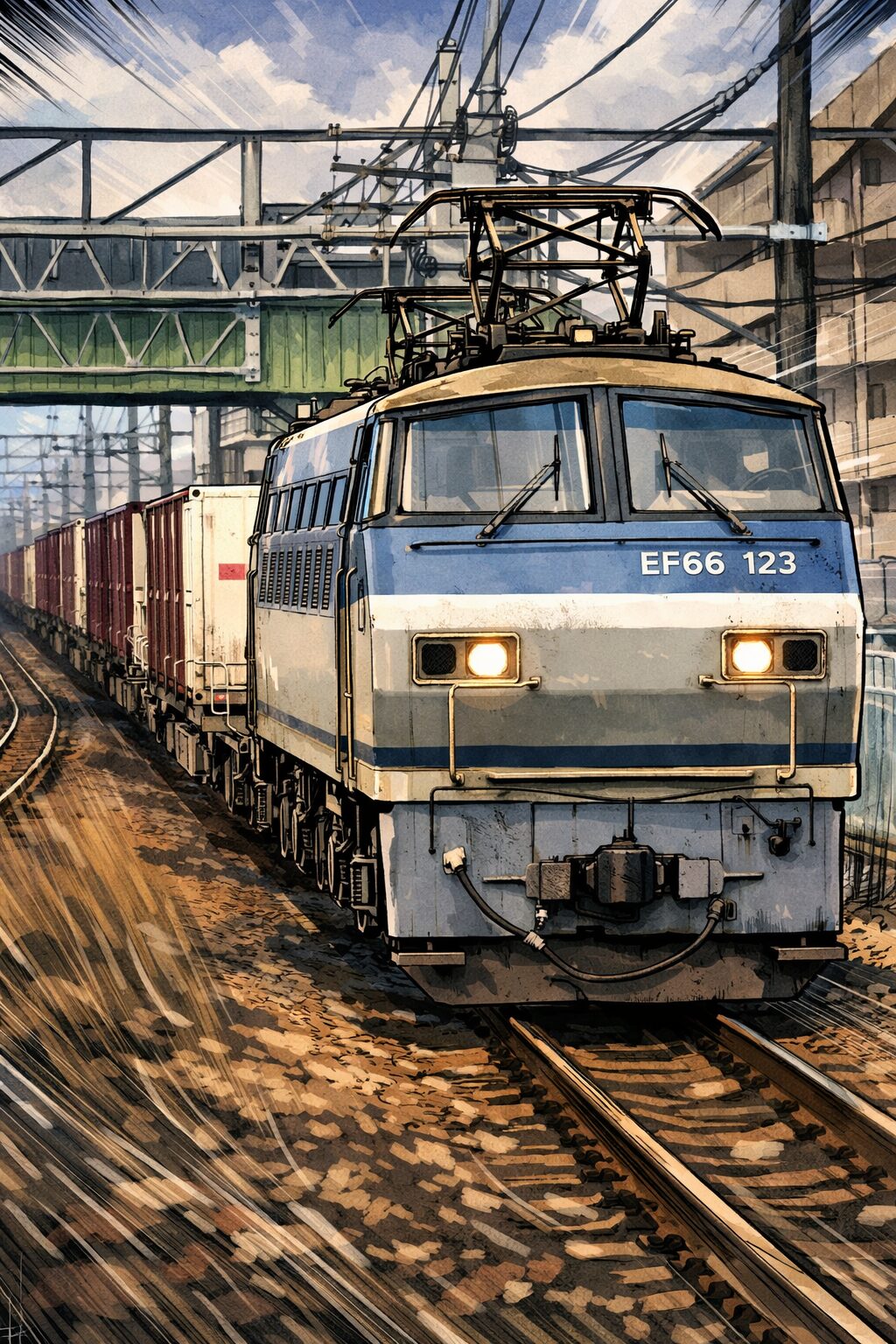 EF66 100番台は、鉄道ファンの間でも印象の強い機関車です。