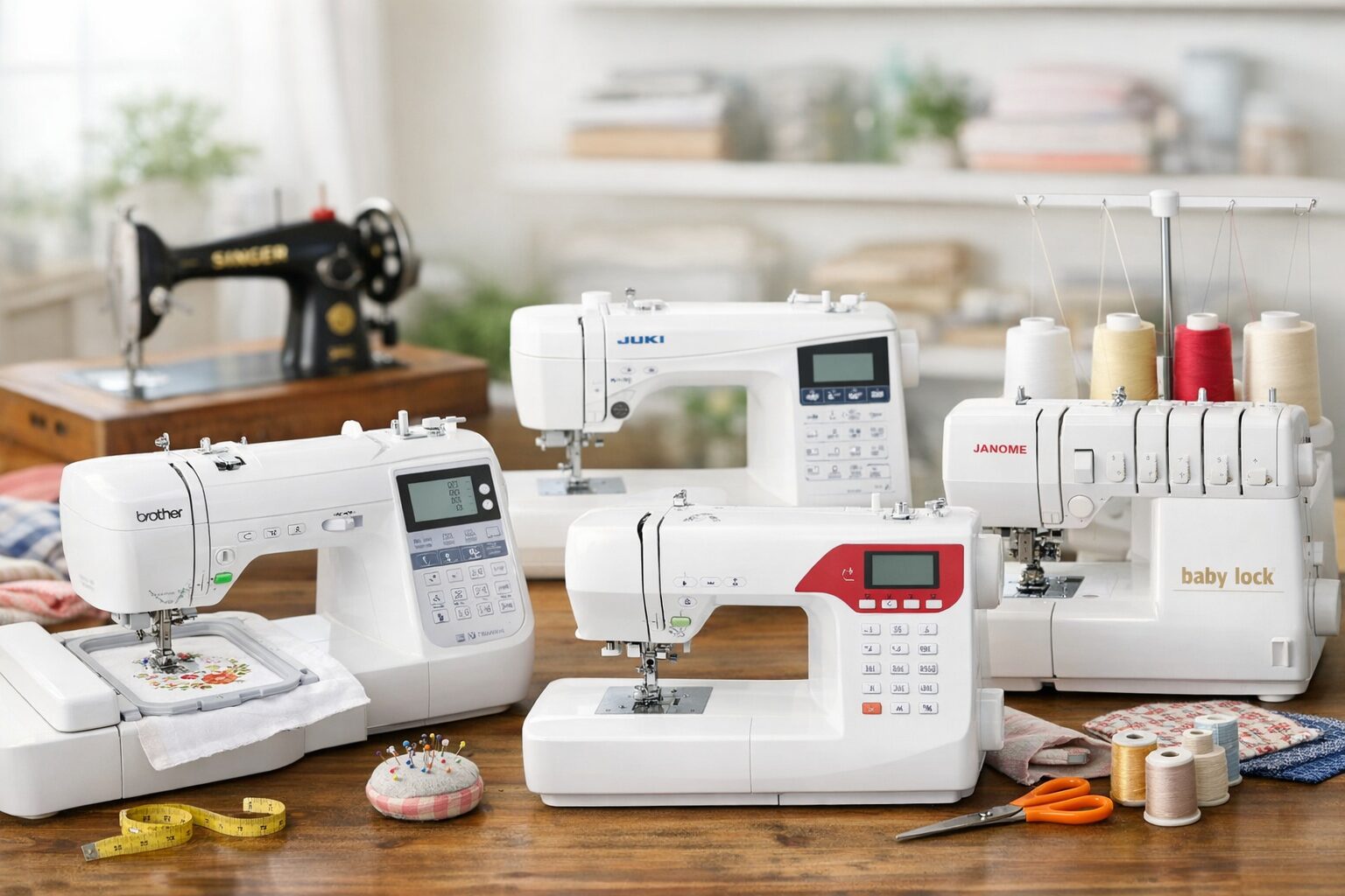 家庭用ミシンで知名度が高く、初心者向けから上位機種まで幅広く展開しています。