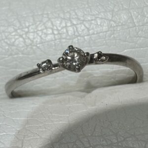 真ん中に大きめのダイヤモンド、そのダイヤモンドを挟むように小さなダイヤモンドが飾られています。が、よく見ると右側のダイヤモンドが外れてしまっています!