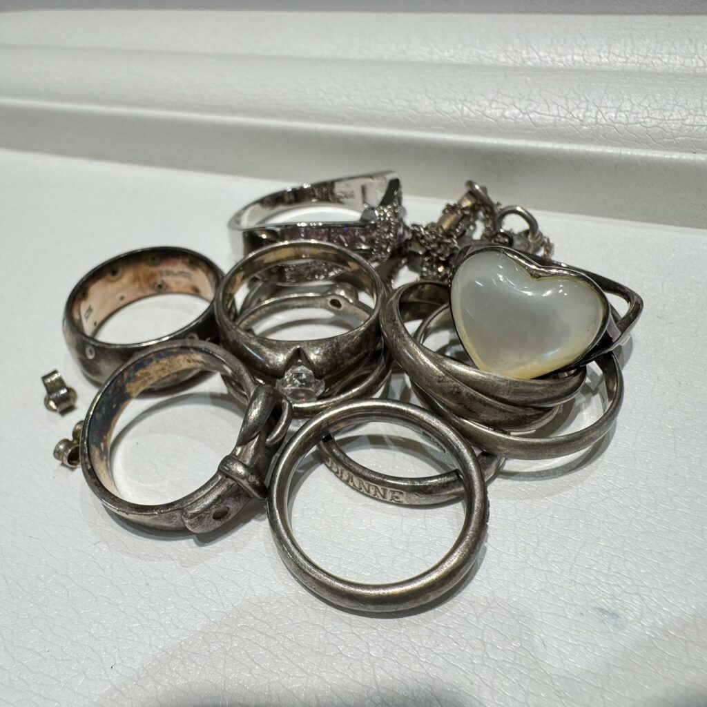 金と比較するともちろん安いですが、指輪やネックレスまとめてお持ちいただくと意外と値段がついてびっくりされます(^^)
