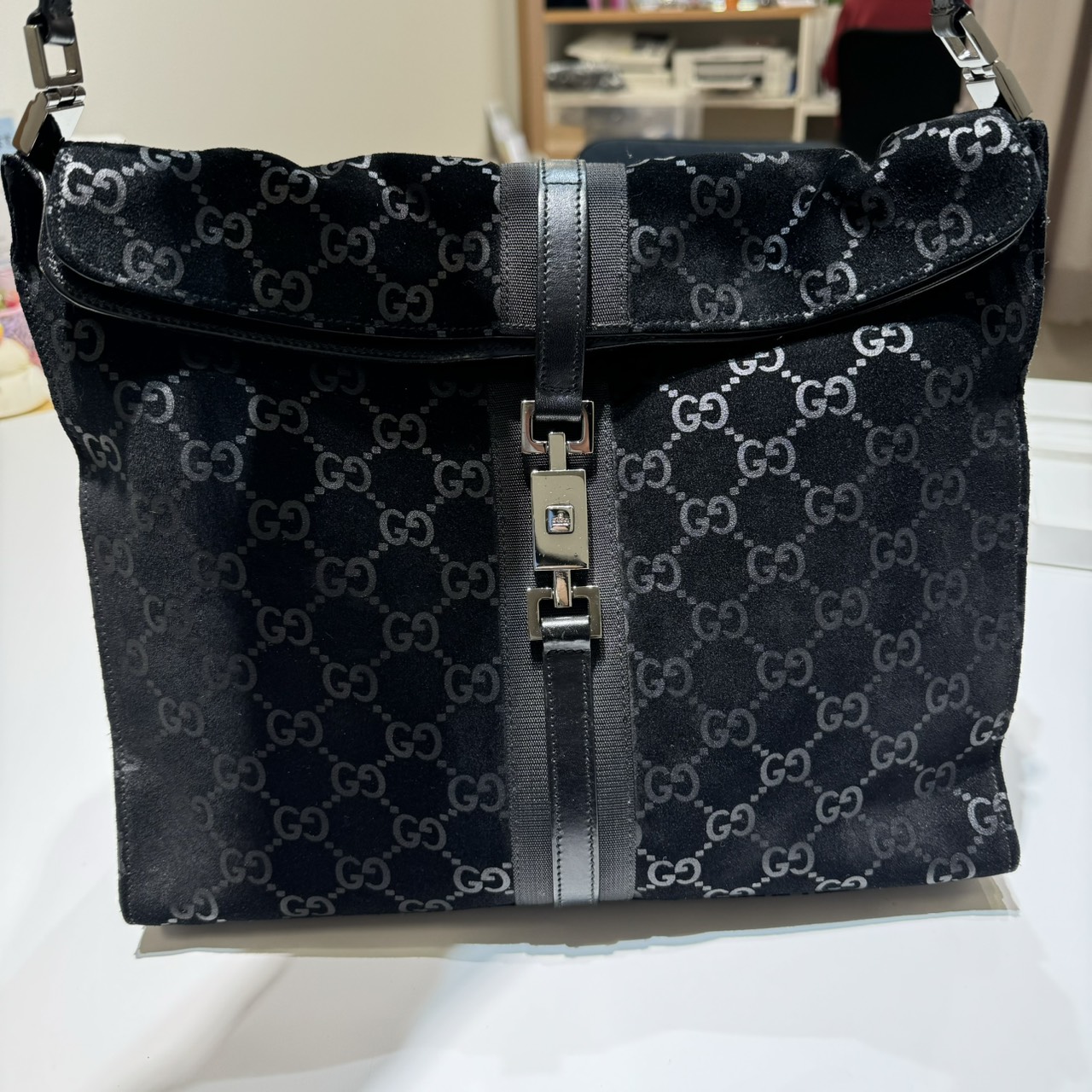 今回お持ちいただいたお品物は、GG柄が全面に施された高級感あふれるスエード素材のもの。 最近では「オールドグッチ」の人気再燃により、中古市場でも再び注目が集まっているモデルです。