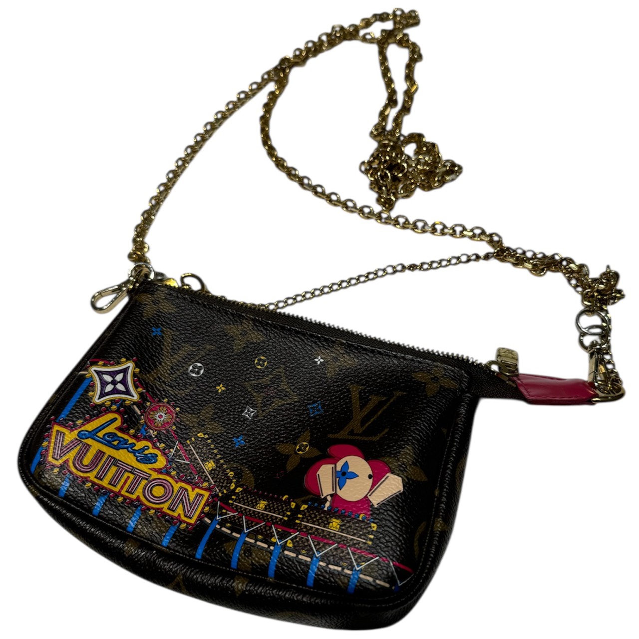 モノグラム・キャンバスの上に、メゾンの愛すべきマスコット「ヴィヴィエンヌ」が遊園地を楽しんでいる姿が描かれた、遊び心満載のデザイン。見ているだけで冬のワクワク感が伝わってくるような、ファン垂涎のアイテムです。