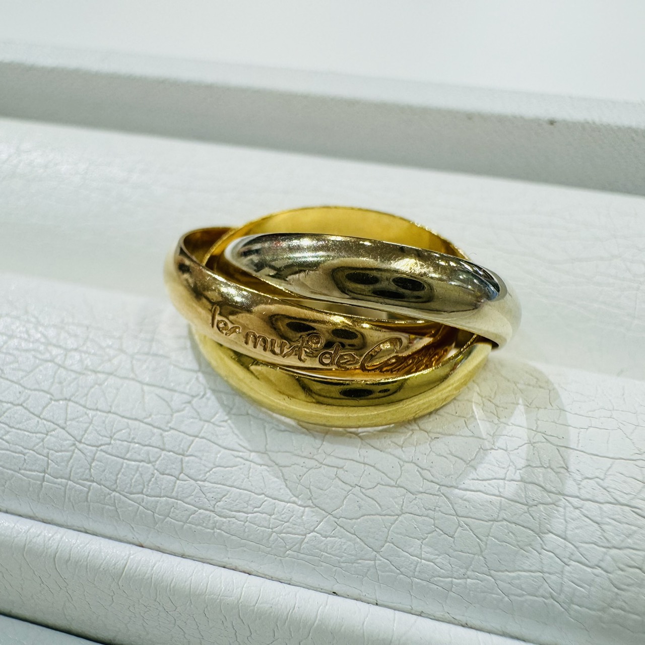 こんにちは!貴金属・ブランド買取専門店、かんてい局じゃんぼスクエア香芝店です。 本日ご紹介するのは、ジュエリー界の永遠のアイコン、カルティエ(Cartier)の「トリニティリング(三連リング)」です。