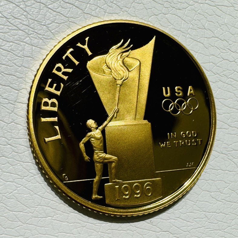 アメリカ発行の5ドル金貨、通称「トーチランナー」。K21.6(金含有率90%)という高い純度を誇る記念硬貨です。世界的なスポーツの祭典の歴史を刻んだ逸品ですが、現在は「歴史的価値」以上に「金そのものの価値」が凄まじい勢いで高まっています。