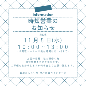 11月5日(水)の営業時間は