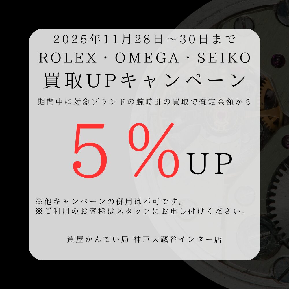 11月28日(金)〜11月30日(日)の3日間限定で、人気ブランド腕時計の 買取5%UPキャンペーン を開催いたします。