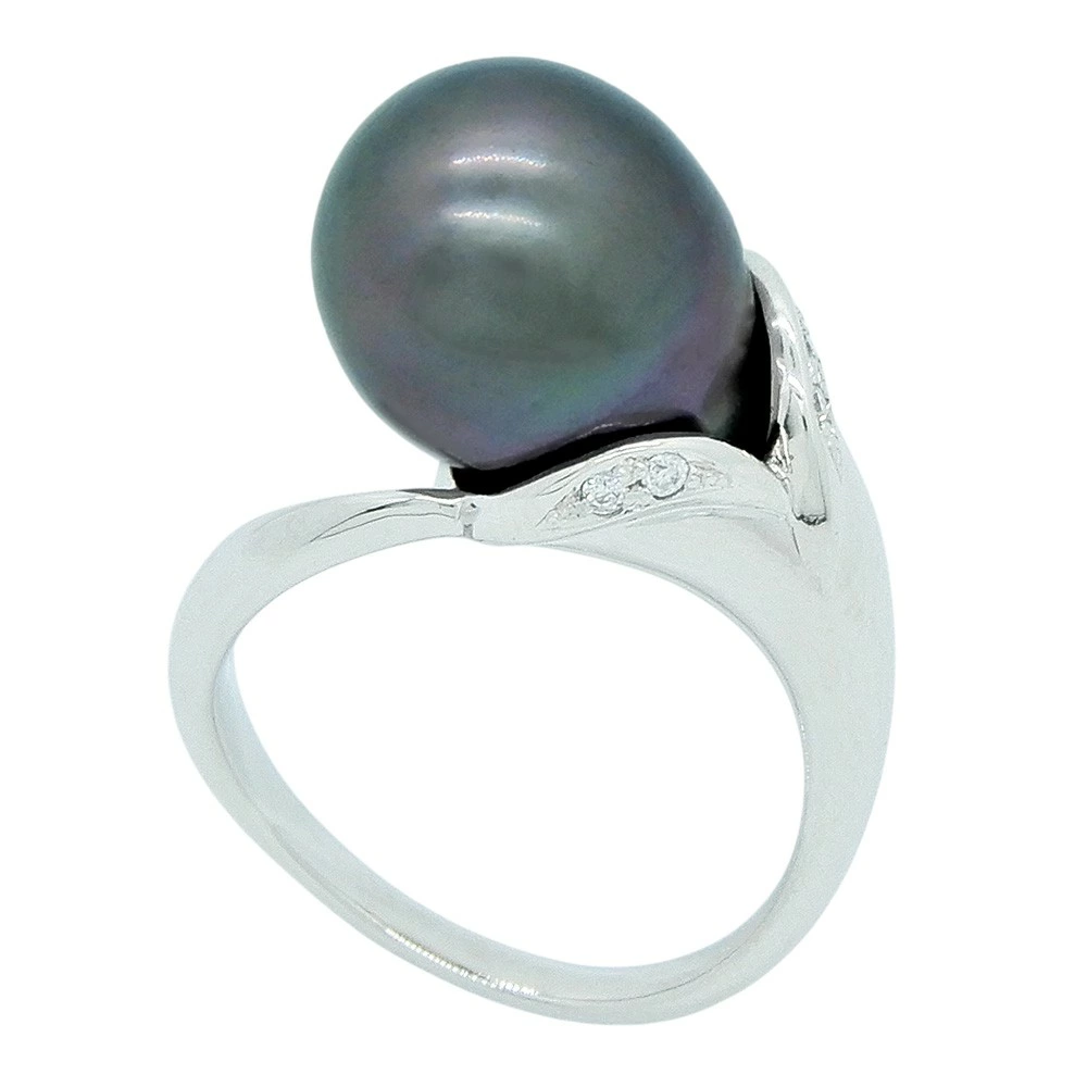 ブラックパールは、一般的なアコヤ真珠の「白」とは対照的な、神秘的で奥深い輝きが最大の魅力です。特に、Pt900のリングのように、プラチナ(白)と合わせることで、その存在感とエレガンスが際立ちます。