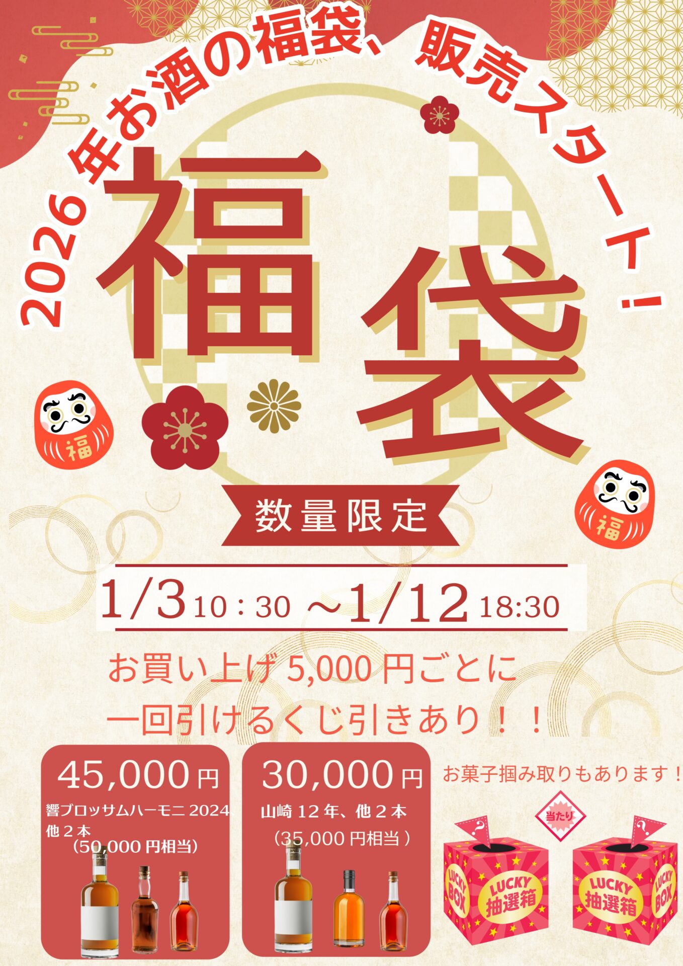 お酒の福袋もご用意してます!ジャパニーズウイスキー!(^^)!
